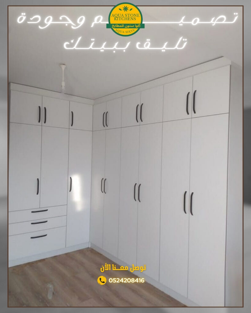 • استغلال ذكي للمساحات: تصميمات مخصصة تناسب مساحة بيتك مهما كانت، لضمان حرية الحركة وسهولة الاستخدام.